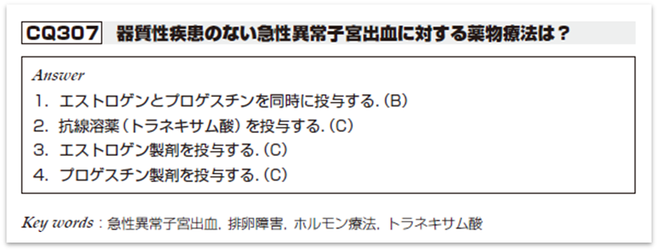 子宮からの異常出血に対しては、婦人科診療ガイドラインに詳細に記載があります。以下、抜粋します。