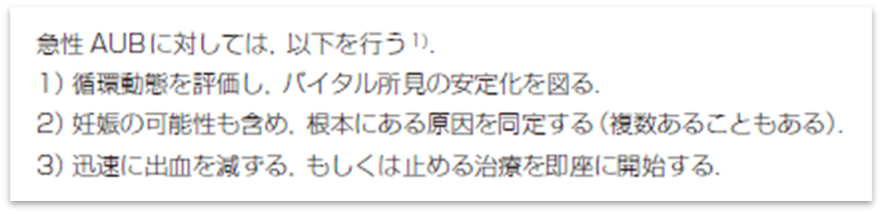 急性異常子宮出血(AUB)に対しては、下記の対応を行うべきです。